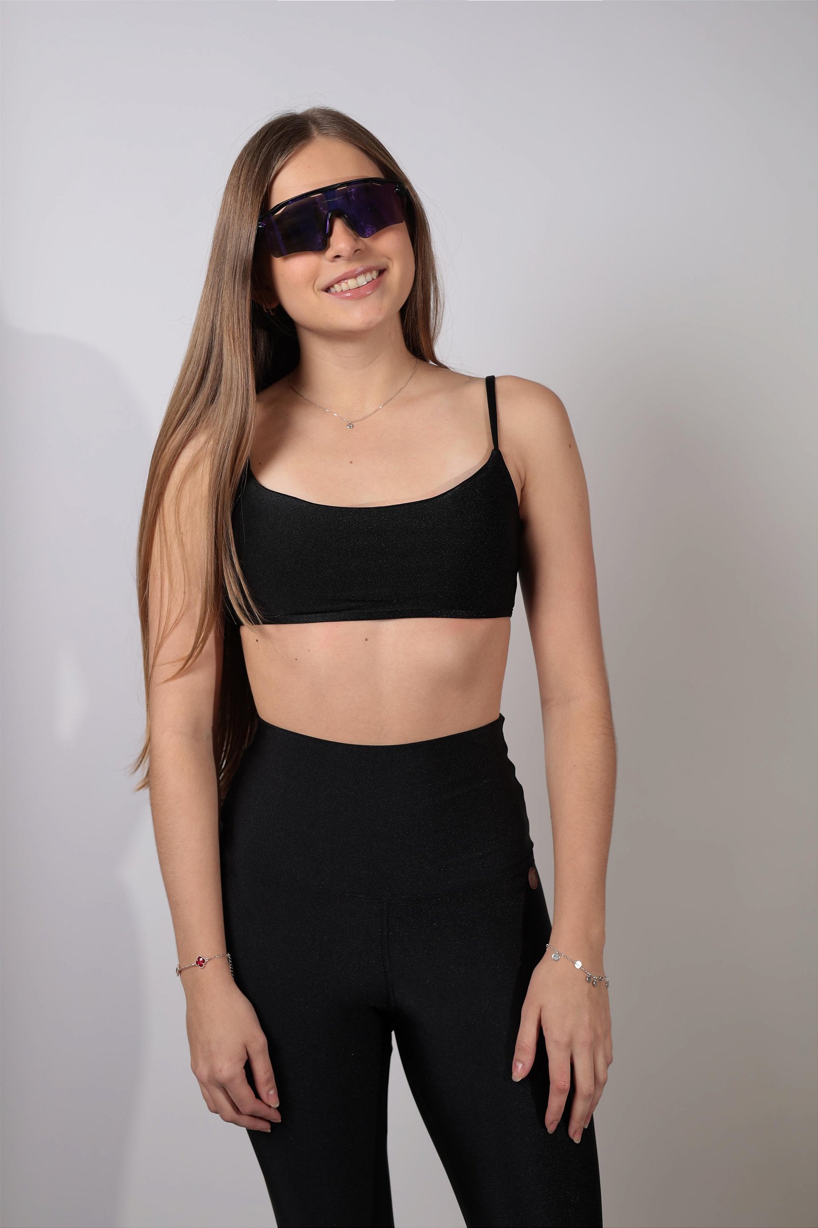 TOP PRETO LISO FRENTE VAZADO COSTAS, liso frente alcinha vazado costas, trilobal fit, toque fashion com brilho, toque refrigerado, proteção uv, duplo de tecido, com bojo removível, valoriza as costas, perfeita para o treino de musculação e beach tênis, composição 90% poliamida 10% elastano.